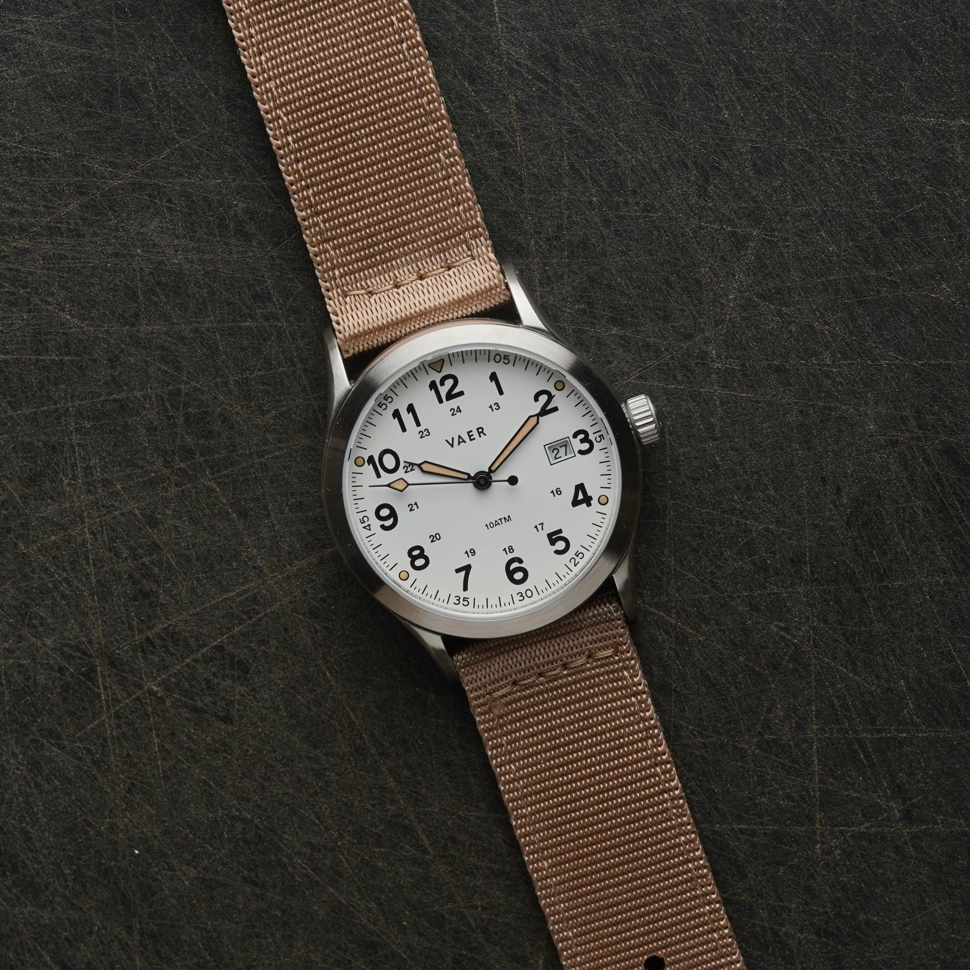 This Vaer watch is in excellent condition with surface wear to the case consistent with light use.